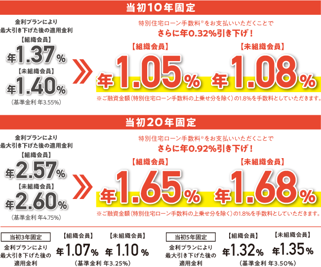 - お客さまへ当初ご融資する金利は、ろうきんが定める最大引き下げ後の金利が下限となります。